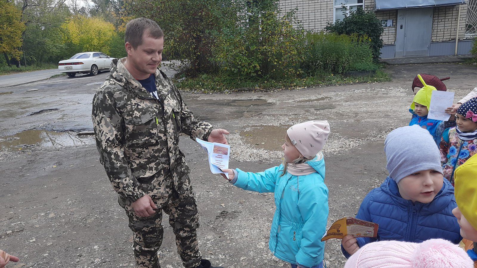 Юные эколята Елочка, Тихоня, Шалун и Умница, раздавали буклеты «Чистота планеты в наших руках!», «Чистый город – это мечта? Нет - это реальность», листовки с призывом сохранять природный мир вокруг нас. Юные экологи, полученные знания в ДОО, применяли на практике: прочли стихи об экологии, совместно со взрослыми собрали мусор.